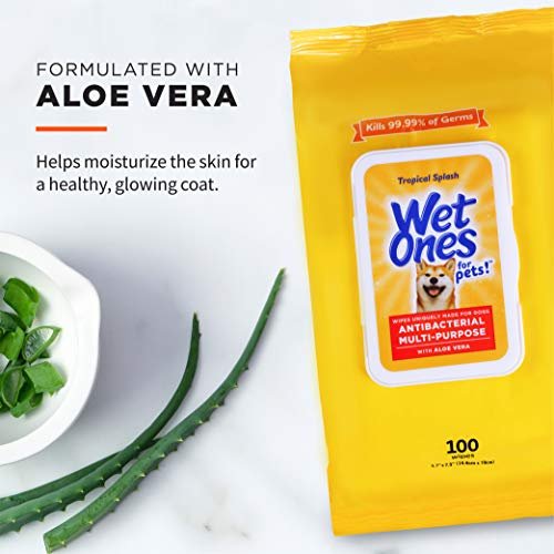 Wet Ones for Pets Multipurpose Dog Wipes with Aloe Vera, Tropical Splash Scent – Pet Bathing Wipes with Wet Lock Seal for Dog Paws & All Over Use, 100 Count