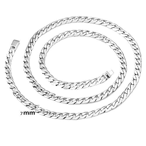 White Gold Cuban Necklace | 7mm Diamond Cut Miami Link | 2X More pure 18 ct Plating Than Other Chains for Men – The Look & Feel of Pure Solid Gold – Free Replacement 16″ to 30″ inch USA Made! (30)