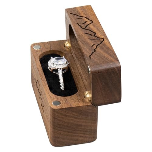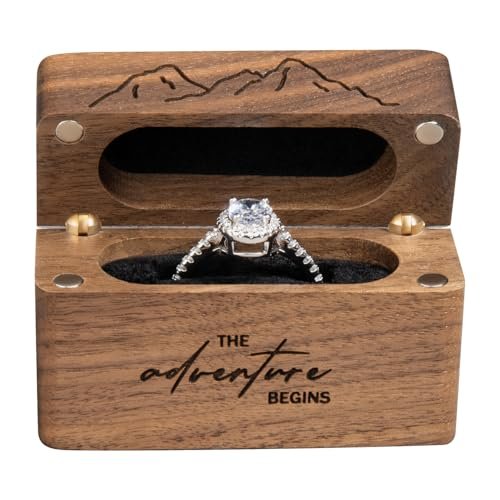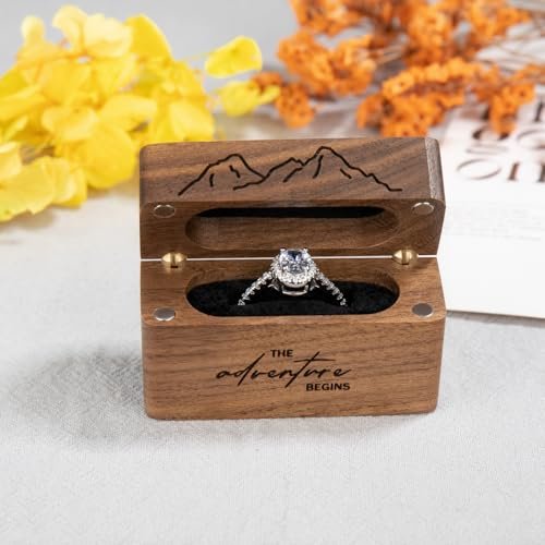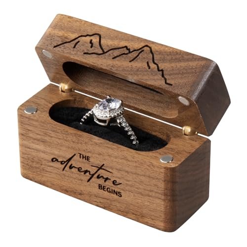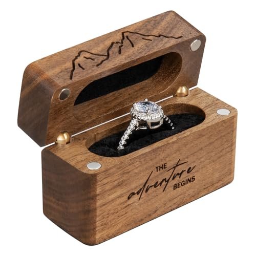 Wislist Ring Bearer Box for Wedding Ceremony Engraved Wooden Holder for Little Slim Ring,Pocket Size Secret Ring Case for Proposal Engagement Ideas(The adventure begins)