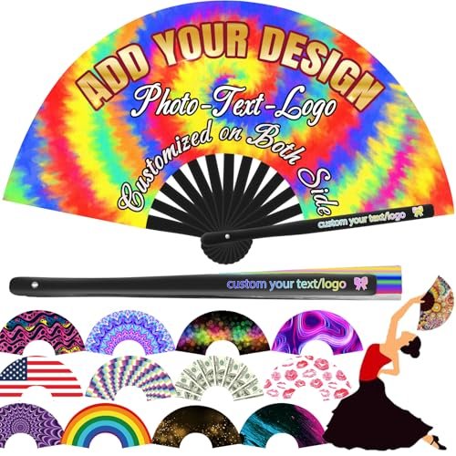 WJunEYao 20 Pcs Custom Fans for Dancing Personalized Line Dance Popping Fan Handheld with Pictures Text Customized Clack Fans Gift for Women Decorative Foldable Wedding Church Cosplay Party 10″