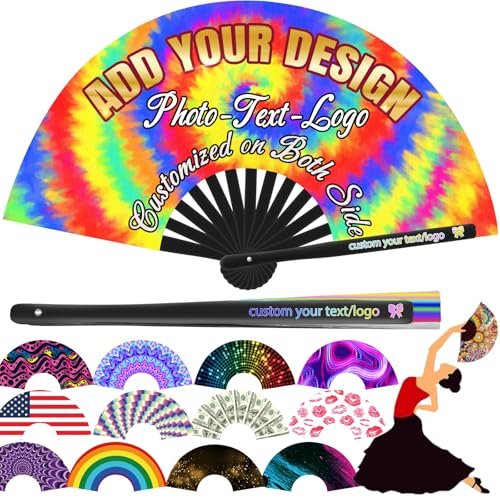 WJunEYao 50 Pcs Custom Fans for Dancing Personalized Line Dance Popping Fan Handheld with Pictures Text Customized Clack Fans Gift for Women Decorative Foldable Wedding Church Cosplay Party 10″