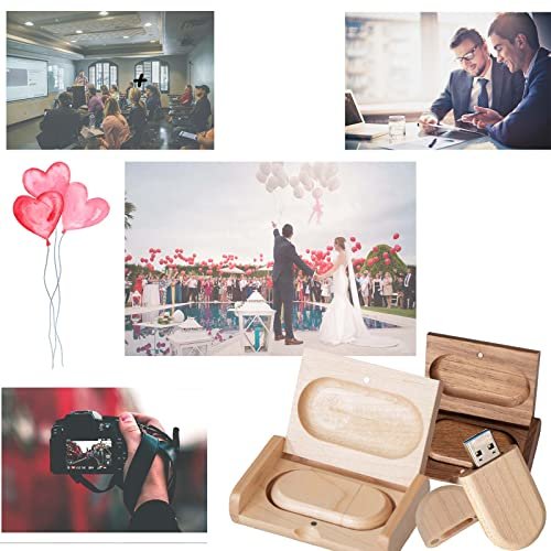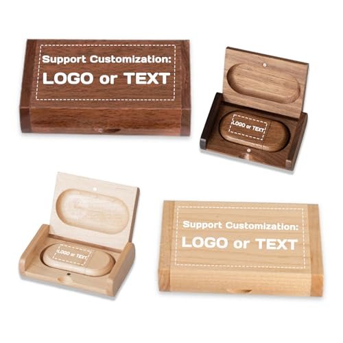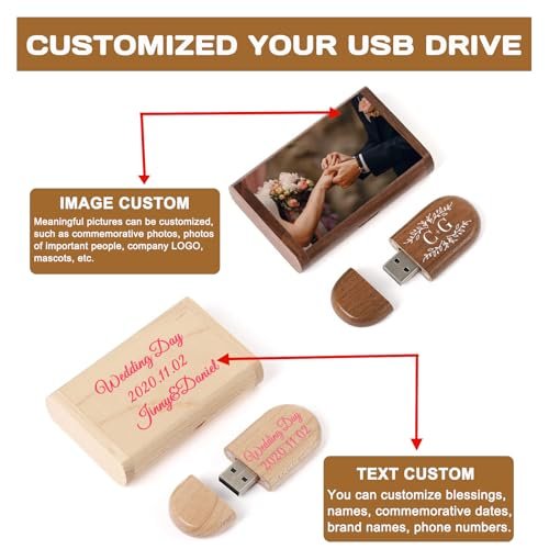 Wood USB Flash Drive Custom Logo 2.0 USB Jump Drive 1GB Wood USB Memory Stick Thumb Drive with Box for Wedding/Couple/Parents 25Pack – Maple/Walnut(Oval Shape)