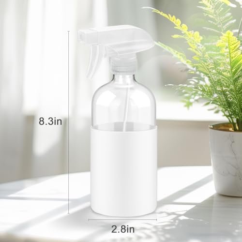 Worldgsb 2 Pack Glass Spray Bottles with Silicone Sleeve, 16 oz Empty Refillable Containers with Adjustable Spray Nozzles, Spray Bottles for Hair, Cleaning Solutions and Plants White
