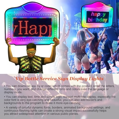 XEEAOFE Bottle Service Sign, Bottle Presenter for Night Club, Bottle Girl Sign, Club Signs for Bottle Service LED Scrolling, Colour Adjustment, APP Connection for Text Editing