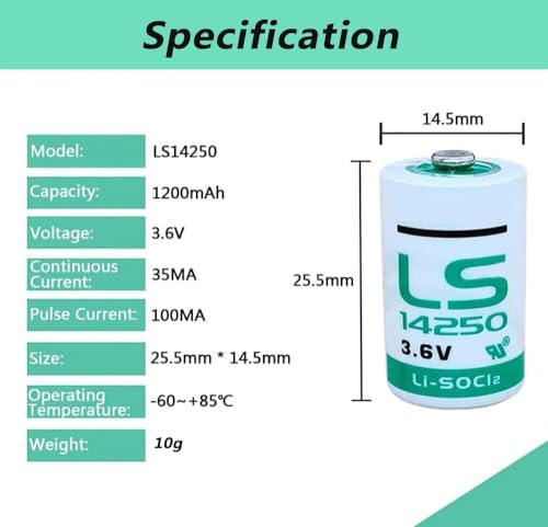 YGLEFBBJOY 【200 Pack】 LS14250 3.6V 1/2AA Lithium Battery, 3.6 Volt 1200mah, LS 14250, LS-14250