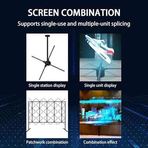 YHJCMBWLBBSH 3D Hologram Fan, 3D Hologram Projector, Holographic Christmas Tree Advertising Display, Support APP+Remote+Bluetooth Audio+Splicing For Store, Bar