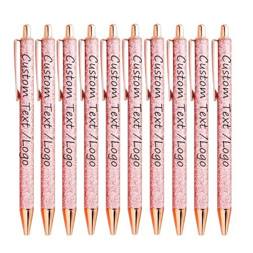 Yucold Customized Pens with Name & Logo – Personalized Ballpoint Pens Laser Engraved, Metal Holder & Colorful Design (0.7mm Black Ink) – Gifts for Wedding, Office, Business, Party (Rose Gold,150)